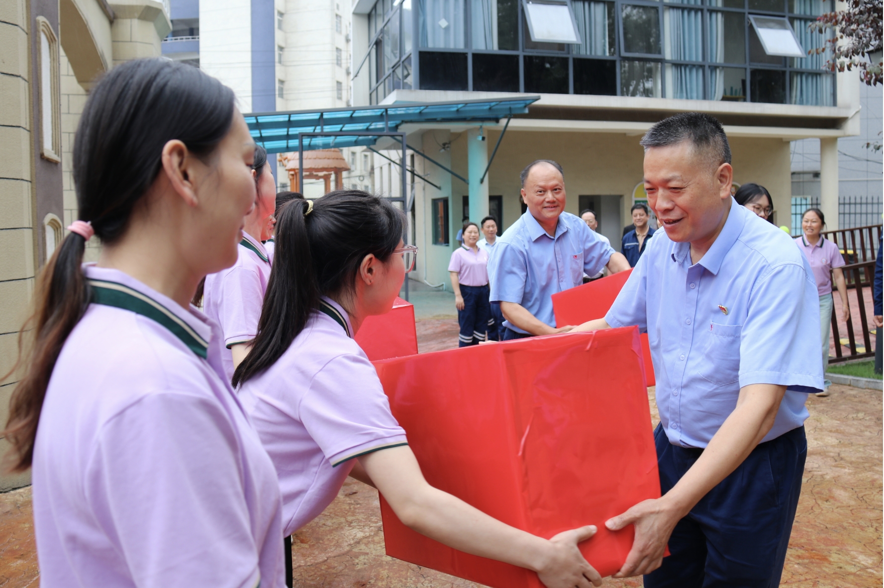 5月30 日下午,在“六一”國際兒童節(jié)來臨之際, 公司黨委副書記、紀(jì)委書記、工會(huì)主席湯偉和副總經(jīng)理謝集祥帶隊(duì)來到漣鋼二幼兒園開展“六一”慰問活動(dòng),為孩子們送去節(jié)日祝福,并向廣大教師致以誠摯問候。