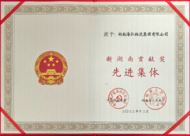 去年12月,湖南省委、省政府發(fā)布了第二屆新湖南貢獻(xiàn)獎先進(jìn)集體名單。其中,湖南海弘物流集團有限公司等79家民營企業(yè)獲評“新湖南貢獻(xiàn)獎先進(jìn)集體”稱號,這是省委、省政府對海弘集團在湖南省實現(xiàn)“三高四新”美好藍(lán)圖,全面建設(shè)社會主義現(xiàn)代化新湖南的歷程中表現(xiàn)出來的創(chuàng)新發(fā)展、履行責(zé)任、敢于擔(dān)當(dāng)、服務(wù)社會的卓越精神的肯定。