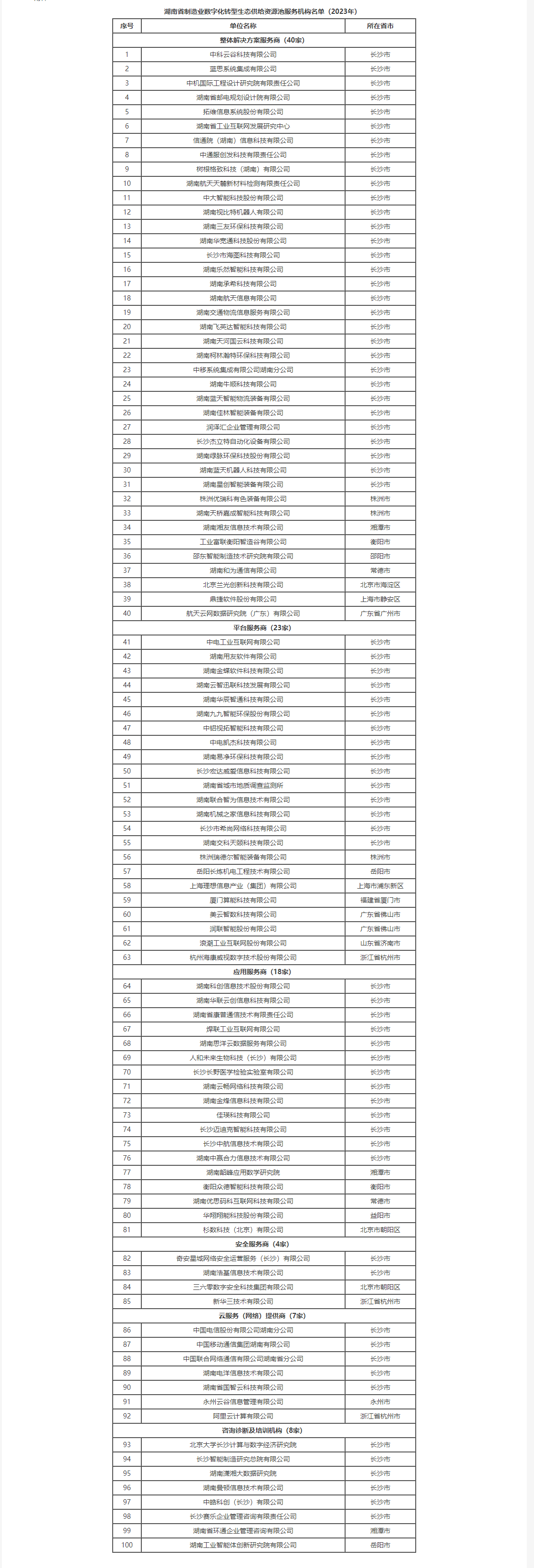 關(guān)于公布湖南省制造業(yè)數(shù)字化轉(zhuǎn)型生態(tài)供給資源池服務(wù)機(jī)構(gòu)名單(2023年)的通知